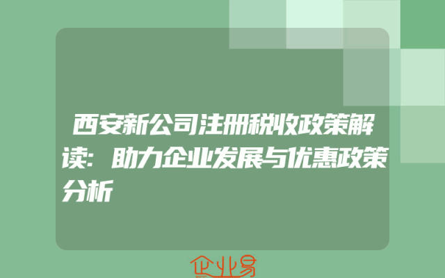 - 西安新公司注册税收政策解读:助力企业发展与优惠政策分析