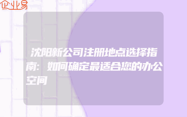 - 沈阳新公司注册地点选择指南:如何确定最适合您的办公空间在沈阳注册新公司的过程中,选择一个合适的办公空间是至关重要的一步。这个空间不仅会影响到公司的运营效率,也会对员工的工作环境和心情产生重要影响。本文将为您提供一些关于如何确定最适合您的办