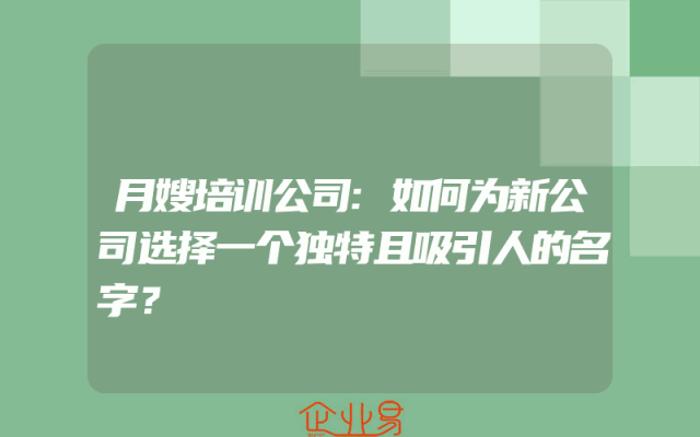 - 月嫂培训公司:如何为新公司选择一个独特且吸引人的名字?