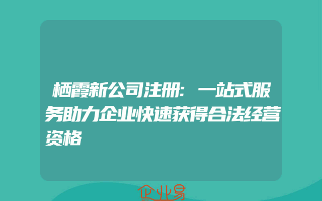 - 栖霞新公司注册:一站式服务助力企业快速获得合法经营资格
