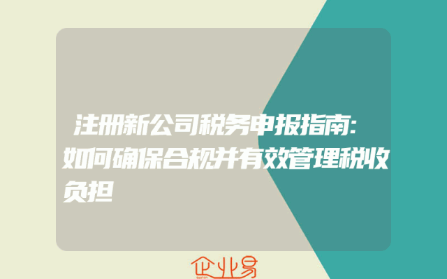 - 注册新公司税务申报指南:如何确保合规并有效管理税收负担