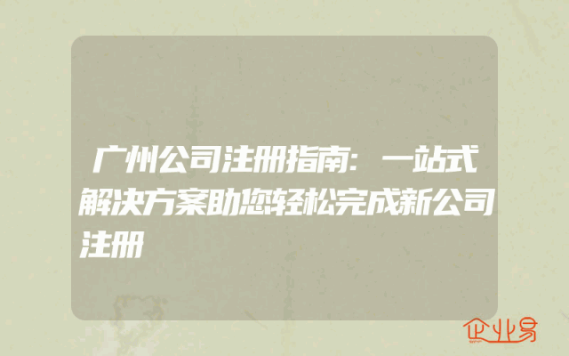 - 广州公司注册指南:一站式解决方案助您轻松完成新公司注册