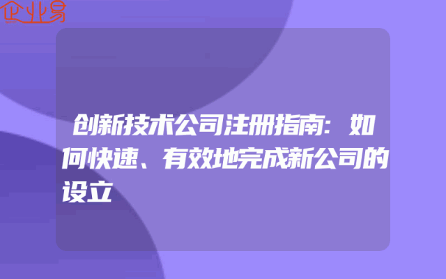 - 创新技术公司注册指南:如何快速、有效地完成新公司的设立