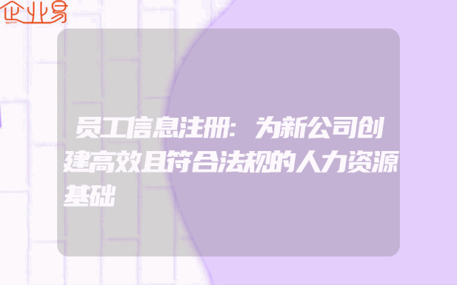 - 员工信息注册:为新公司创建高效且符合法规的人力资源基础随着经济的发展,越来越多的企业开始成立。对于这些新成立的企业来说,如何建立高效的人力资源体系,以便更好地招聘和管理员工,是他们面临的一大挑战。本文将介绍一种有效的方法——员工信息注册,以