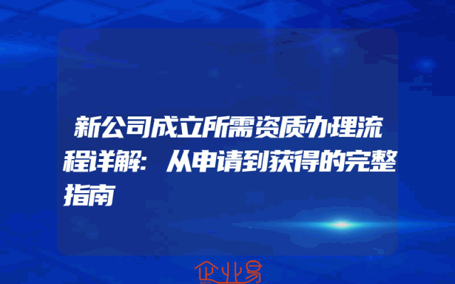 - 新公司成立所需资质办理流程详解:从申请到获得的完整指南