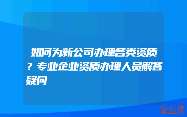 - 如何为新公司办理各类资质?专业企业资质办理人员解答疑问