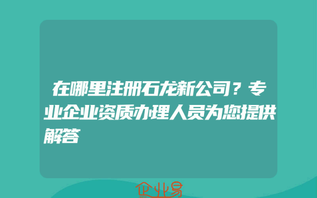 - 在哪里注册石龙新公司?专业企业资质办理人员为您提供解答