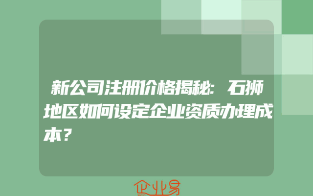 - 新公司注册价格揭秘:石狮地区如何设定企业资质办理成本?