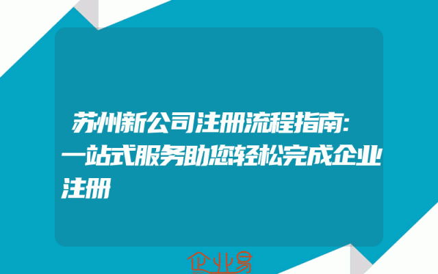 - 苏州新公司注册流程指南:一站式服务助您轻松完成企业注册