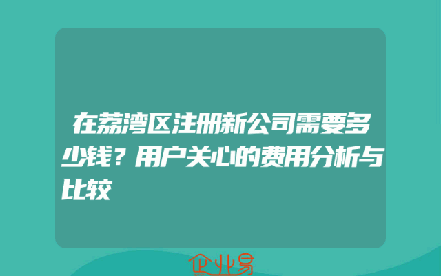 - 在荔湾区注册新公司需要多少钱?用户关心的费用分析与比较