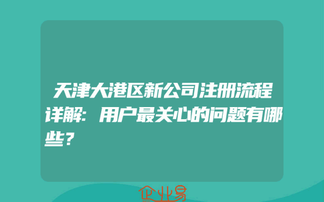 - 天津大港区新公司注册流程详解:用户最关心的问题有哪些?