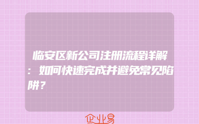 - 临安区新公司注册流程详解:如何快速完成并避免常见陷阱?
