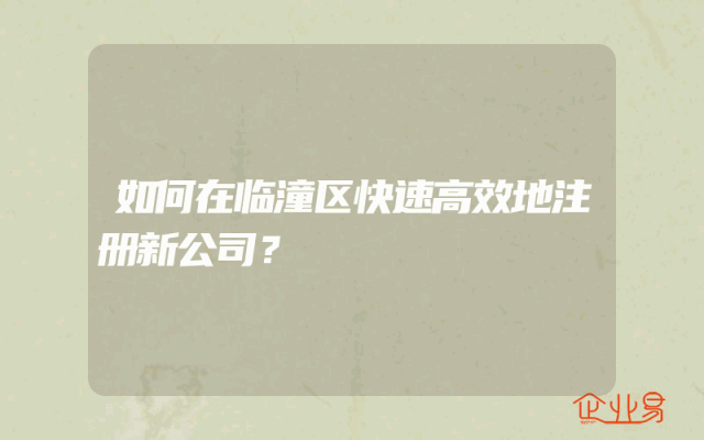 - 如何在临潼区快速高效地注册新公司?