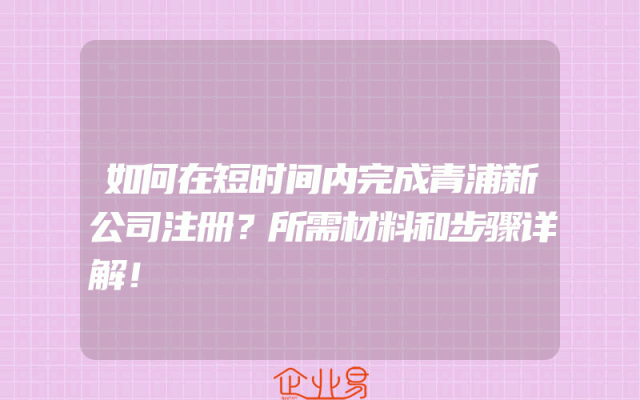 - 如何在短时间内完成青浦新公司注册?所需材料和步骤详解!