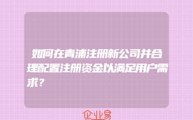 - 如何在青浦注册新公司并合理配置注册资金以满足用户需求?