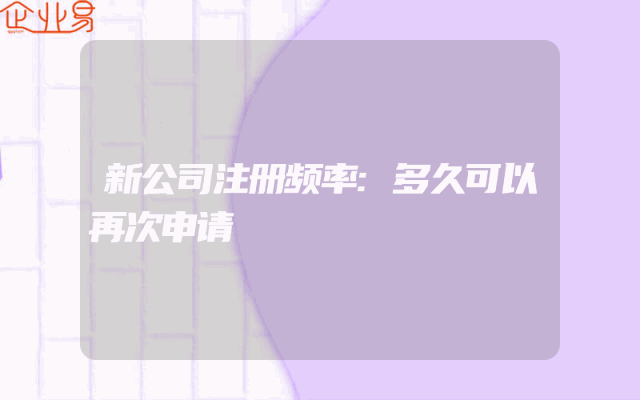 - 新公司注册频率:多久可以再次申请?用户最关心的问题解答在创业的道路上,注册公司是第一步。然而,对于许多创业者来说,他们可能会面临一个共同的问题:新公司注册的频率是多少?多久可以再次申请?本文将为您解答这个问题,帮助您更好地了解公司注册的相关