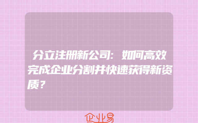 - 分立注册新公司:如何高效完成企业分割并快速获得新资质?