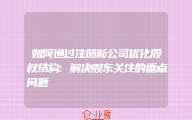 - 如何通过注册新公司优化股权结构:解决股东关注的重点问题