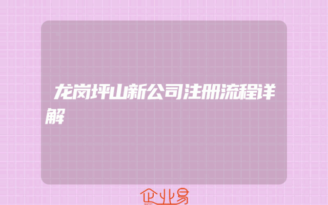 - 龙岗坪山新公司注册流程详解