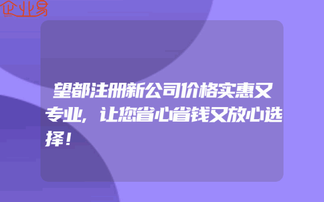 - 望都注册新公司价格实惠又专业,让您省心省钱又放心选择!在当今的商业环境中,拥有一家合法注册的公司对于个人和企业来说都是至关重要的。然而,办理公司注册的过程可能会繁琐且复杂,需要大量的时间和精力。为了帮助您简化这个过程,我们很高兴向您推荐望都