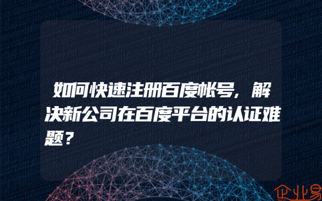 - 如何快速注册百度帐号,解决新公司在百度平台的认证难题?百度作为中国最大的搜索引擎,拥有着庞大的用户群体。对于新公司来说,如何在百度平台上进行有效的推广和营销,是一个重要的问题。而要实现这一目标,首先就需要在百度上注册一个帐号,并完成企业认