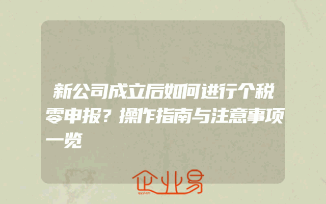 - 新公司成立后如何进行个税零申报?操作指南与注意事项一览