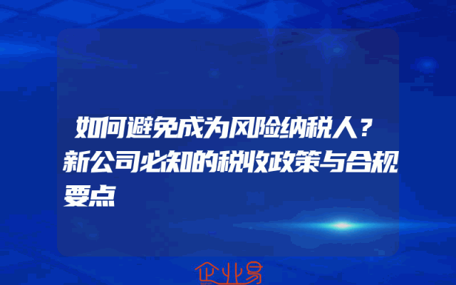 - 如何避免成为风险纳税人?新公司必知的税收政策与合规要点