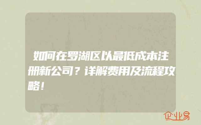 - 如何在罗湖区以最低成本注册新公司?详解费用及流程攻略!