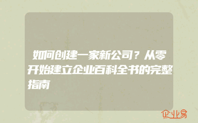 - 如何创建一家新公司?从零开始建立企业百科全书的完整指南