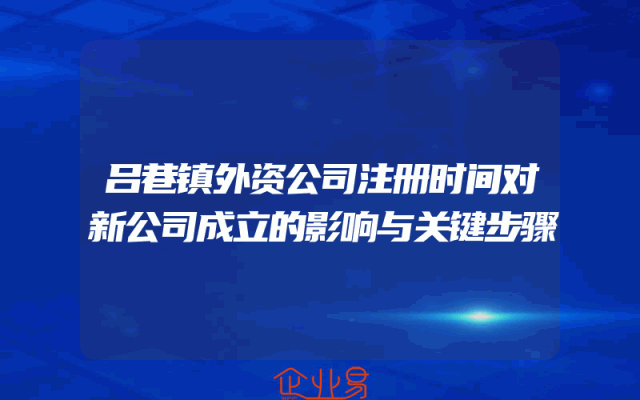 - 吕巷镇外资公司注册时间对新公司成立的影响与关键步骤