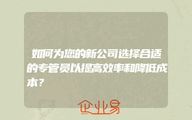 - 如何为您的新公司选择合适的专管员以提高效率和降低成本?