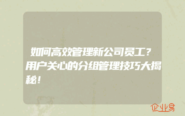 - 如何高效管理新公司员工?用户关心的分组管理技巧大揭秘!在现代企业管理中,员工的管理和分配是一个非常重要的环节。尤其是对于新成立的公司来说,如何高效地管理员工,提高工作效率,是每个管理者都需要面对的问题。本文将为大家揭秘一些用户关心的分组管理