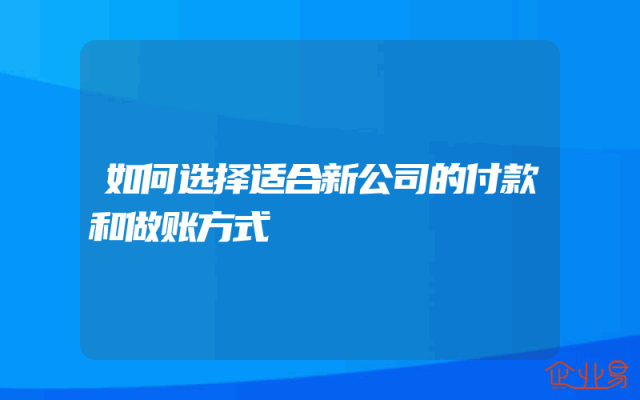 - 如何选择适合新公司的付款和做账方式?在创业初期,选择合适的付款和做账方式对于新公司的发展至关重要。一个合理的付款和做账方式不仅可以帮助公司节省成本,提高效率,还可以避免因财务问题导致的法律风险。本文将为您解答关于如何选择适合新公司的付款和做