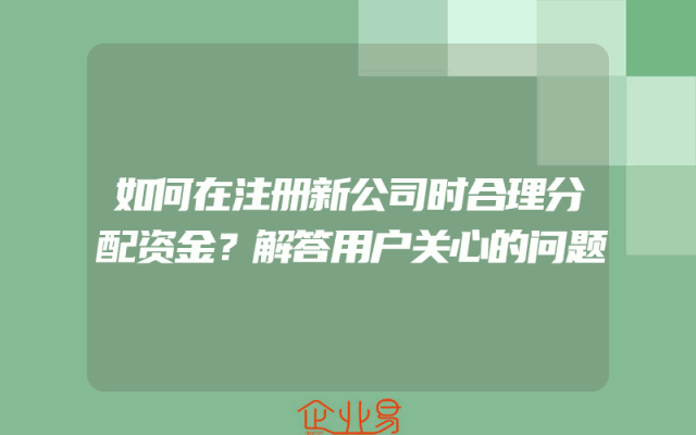 - 如何在注册新公司时合理分配资金?解答用户关心的问题