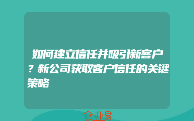 - 如何建立信任并吸引新客户?新公司获取客户信任的关键策略
