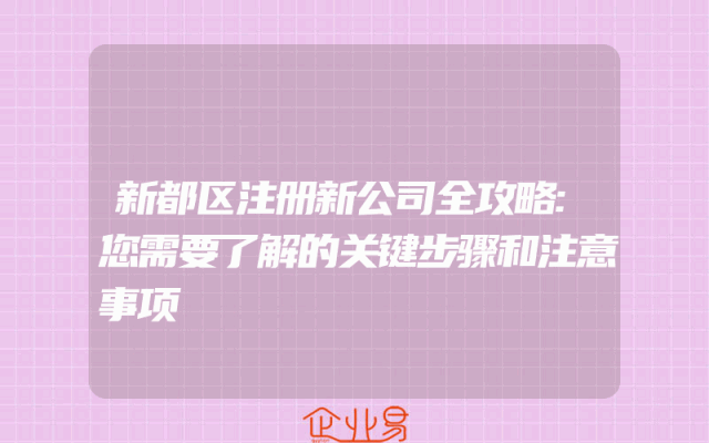 - 新都区注册新公司全攻略:您需要了解的关键步骤和注意事项