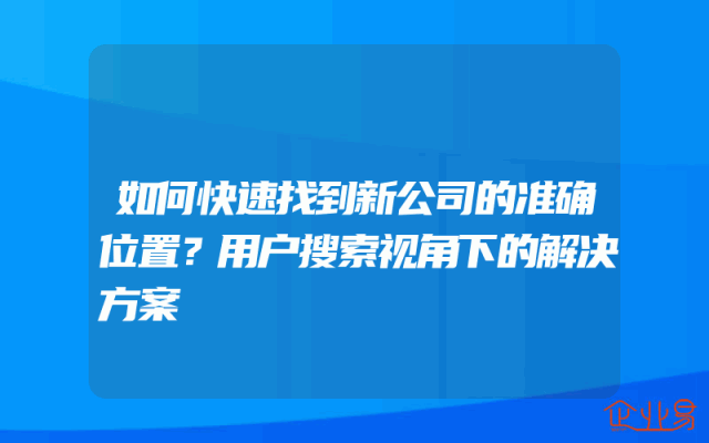 - 如何快速找到新公司的准确位置?用户搜索视角下的解决方案