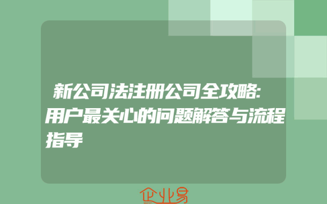 - 新公司法注册公司全攻略:用户最关心的问题解答与流程指导