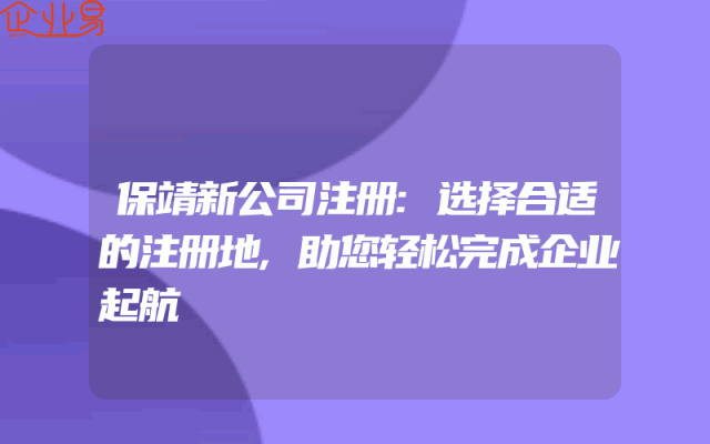- 保靖新公司注册:选择合适的注册地,助您轻松完成企业起航