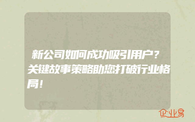 - 新公司如何成功吸引用户?关键故事策略助您打破行业格局!在当今竞争激烈的市场环境中,新公司要想成功吸引用户并打破行业格局,关键在于运用一种独特的营销策略——关键故事策略。关键故事策略是一种通过讲述引人入胜的关键故事来吸引和留住用户的营销方法。