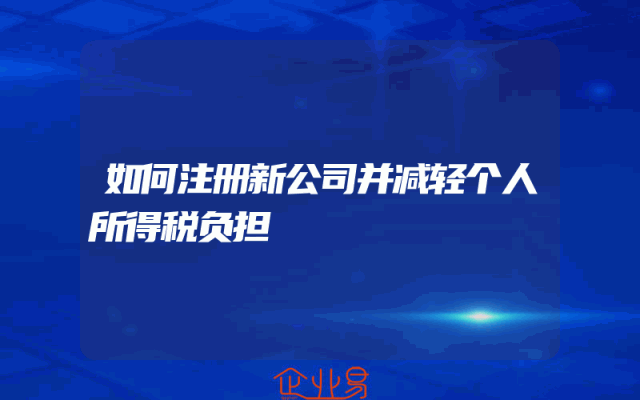 - 如何注册新公司并减轻个人所得税负担