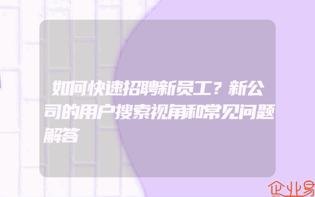 - 如何快速招聘新员工?新公司的用户搜索视角和常见问题解答