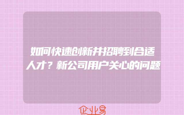 - 如何快速创新并招聘到合适人才?新公司用户关心的问题