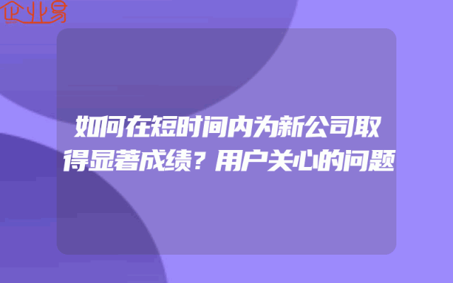 - 如何在短时间内为新公司取得显著成绩?用户关心的问题