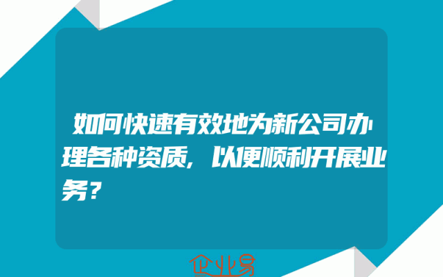 - 如何快速有效地为新公司办理各种资质,以便顺利开展业务?