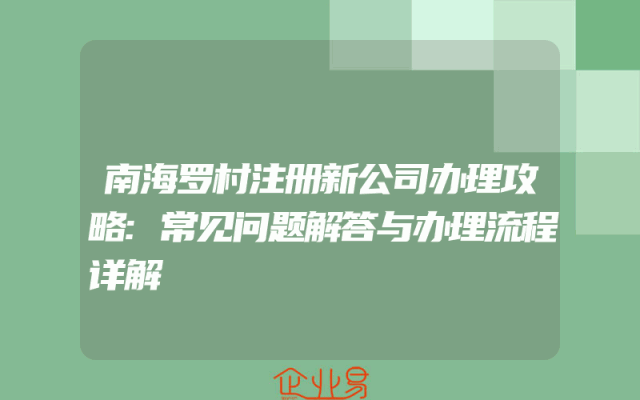 - 南海罗村注册新公司办理攻略:常见问题解答与办理流程详解