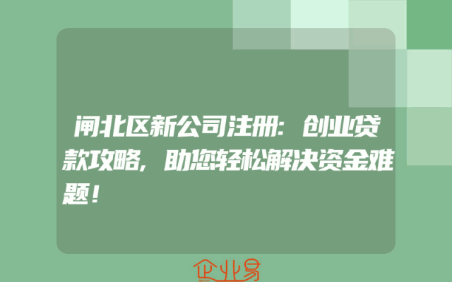 - 闸北区新公司注册:创业贷款攻略,助您轻松解决资金难题!