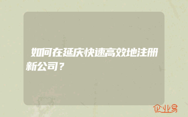 - 如何在延庆快速高效地注册新公司?解答用户最关心的问题!在当今的商业环境中,注册新公司已经成为了许多创业者的首要任务。延庆作为北京的一个重要城市,拥有良好的创业环境和政策支持,吸引了众多的创业者。那么,如何在延庆快速高效地注册新公司呢?本文