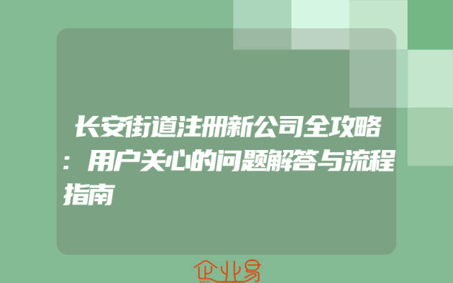 - 长安街道注册新公司全攻略:用户关心的问题解答与流程指南