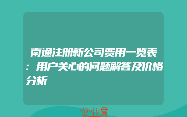 - 南通注册新公司费用一览表:用户关心的问题解答及价格分析